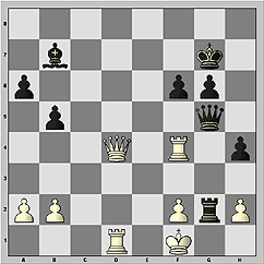 29.Rd4 Rg5 30.Rf4! (хуже трусливое 30.Qf4 Rxg2+ 31.Kf1 Qxf4 32.Rxf4 g5! и в окончании у белых похуже; и, конечно, не годилось 30.g3? Qf3) 30...Rxg2+ 31.Kf1. Теперь выясняется, что атака на короля есть не у черных, а у белых!
