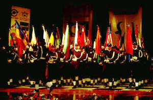 Следующим пунктом программы был фильм о строительстве водного канала. Мне все это напомнило советские планы переброски северных рек на юг. Кульминацией культурной программы стал момент появления флагов разных стран на сцене. На сцену вышли девушки, показав чудеса перестроения в ряды, круги, каре, цветки и другие фигуры – все это делалось четко и вызвало в зале бурю овации. А вот техника сработала не так четко.