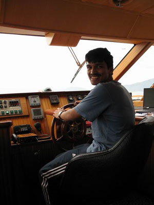 Перед седьмым туром на турнире был выходной, и была прогулка на яхте. Из уставших (в том числе и друг от друга?) участников в ней приняли участие только трое - Рублевский, Карякин и Харикришна. Судей и организаторов на яхте набралось семеро. Я бы поехал тоже - но вместо этого готовил свой предыдущий отчет для ChessPro. Согласитесь - что-то героическое, жертвенное в этом есть.