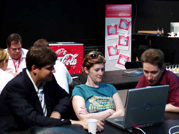 Наконец-то в Дортмунде наступил долгожданный выходной! Не понимаю я организаторов в этом году. Только разыгрались - отдых. У кого-то отдых сразу, у кого-то чуть попозже... Редкие участники заходят в пресс-центр разобрать партии... Их-то и удалось заснять. Чудом...