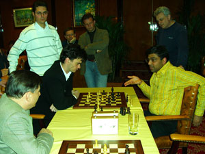 К поединку Ананда и Иванчука проявили интерес голландцы - главный редактор New In Chess Дирк Ян тен Гейзендам (на снимке слева) и главный арбитр Герт Гийссен (справа)