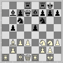 1.d4 d5 2.c4 c6 3.Nf3 Nf6 4.Nc3 e6 5.Bg5 Nbd7 6.e3 Qa5 7.cxd5 Nxd5 8.Qd2 Bb4 9.Rc1 0-0 10.Bd3 e5.