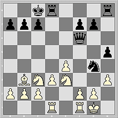 Белые не проиграли сразу и даже заставили соперника уйти на заднюю линию. Но зажать их там - силенок мало. Через несколько ходов черный ферзь возвращается в гущу событий. Надо сказать, что позиция сложна для разыгрывания, причем для обоих партнеров. Все же у черных есть идейный ориентир - надо привести в соприкосновение пешки и вскрыть линии для тяжелых фигур.