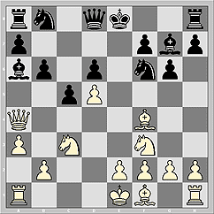 13...Nxd3 (в случае 13...Nh3+? 14.Kh1 Qxd2 15.gxh3 линия "g" открывается для белых) 14.Qxd3 Qg6 15.Ne4 b5 16.Rae1. Напрашивается 16.f4, но на это черные могут увести короля на ферзевый фланг - 16…Bb7 17.f5 Qc6 18.Rae1 0-0-0.