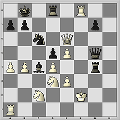 15.Bf4!? (логичное продолжение; после 15.Qc7 0-0 16.Qxb7 Bxb7 черным не о чем беспокоиться) 15...e5! 16.Bxe5!? Это позволяет мне сделать эффектный ход, который я видел, играя 13...Qb7. Но это не значит, что взятие пешки ошибочно. При 16.Be3 Kf8 (16...g6!?) 17.Qc7 позиция была бы довольно неясной.