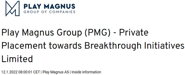 Play Magnus Group raises $10 million through Yuri Milner's Breakthrough Initiatives. “This investment will support Magnus and his team, and help foster the growth of chess worldwide – especially online.” |