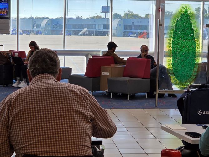 Сижу в аэропорту, наспех устроил шахматный завтрак в Kingside Diner, смотрю в окно — а там сам чемпион мира по шахматам @DGukesh спокойно отдыхает перед поездкой 🤩