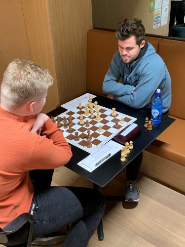 Вторая лига Норвегии: Магнус Карлсен играет на первой доске за команду Offerspill SK. Его игра против FM Андреаса Трюггестадда стала первой игрой Карлсена за много лет, которая не транслировалась в прямом эфире. (Фото: Offerspill SK)