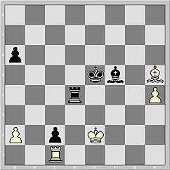 40. Bxc2 Kd4 41. Bd3 a5 42. a4 Rh1 43. Bb5 Rh2+ 44. Kd1 Ke3 45. Kc1 Rxh4 46.