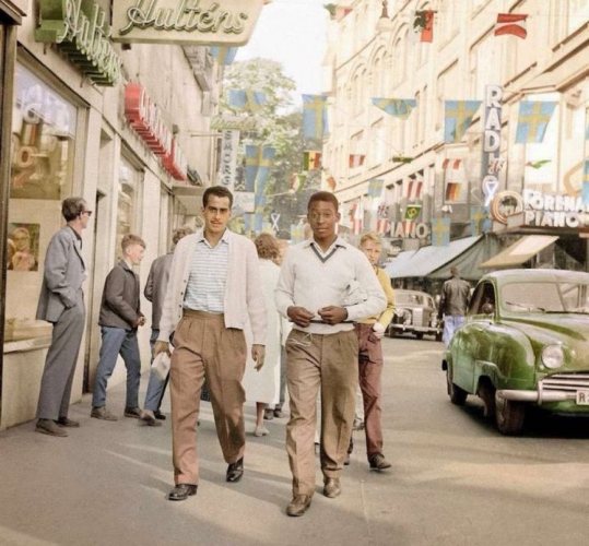 Зито и Пеле гуляют по улицам Швеции во время чемпионата мира 1958 года.
