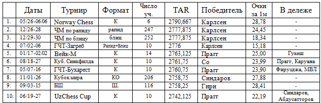 Десять сильнейших турниров года