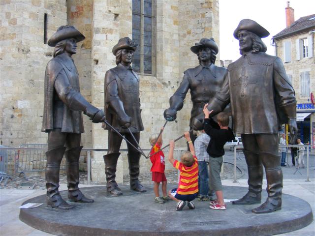 Скульптурная композиция, изображающая Атоса, Портоса, Арамиса и д'Артаньяна со шпагами в руках будет установлена в Гаскони. |