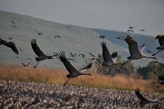 jenya: Через Израиль проходят основные маршруты миграции птиц. Тут их великое множество, от сов и ястребов до журавлей и пеликанов. Журавли тут с сентября, через пару недель полетят на север в Россию. А через месяц сюда прибудут пеликаны.