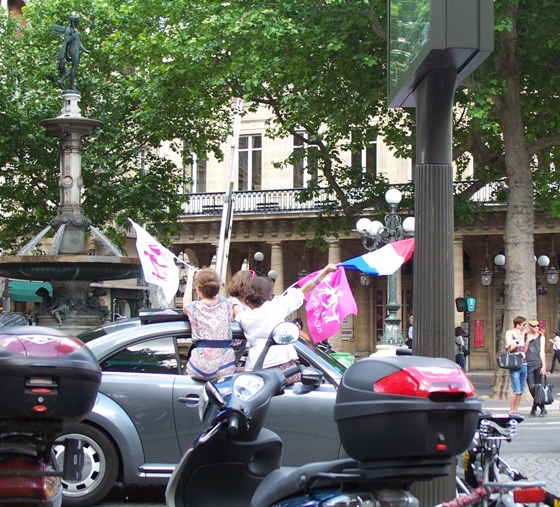 Сегодня у театра Комеди Франсез был свидетелем демонстрации за традиционную семью с мамой и папой. От оперного театра к Лувру минут двадцать ехали машины с флажками Франции и гудели. Кроме флага Франции на каждой машине был флажок со схематичной идеальной семьёй: папа, мама, мальчик и девочка. В машинах были дети, которые постарше вылезли из окон.