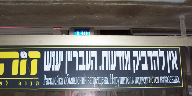 И таки вывела, ушёл я оттуда с приготовленным сендвичем с красной рыбкой. Все разговоры, разумеется, были на русском. Гуляя, сфотографировал объявления на автобусной остановке. Вернее, на двух. Текст объявлений на иврите один и тот же, а русский перевод был сделан двумя разными переводчиками. Хочу отметить также разный фонт надписей, люди стараются, экспериментируют, вкладывают душу в свою работу. Сейчас покажу некоторые фотографии. |