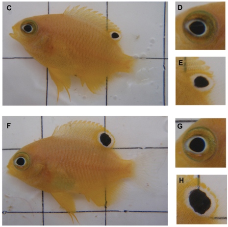 Биологи обнаружили, что у помацентровых рыб Pomacentrus amboinensis те особи, которые в раннем возрасте сталкивались с хищниками, развивают более крупные и заметные ложные «глаза» на хвосте. Исследование опубликовано в журнале Scientific Reports.