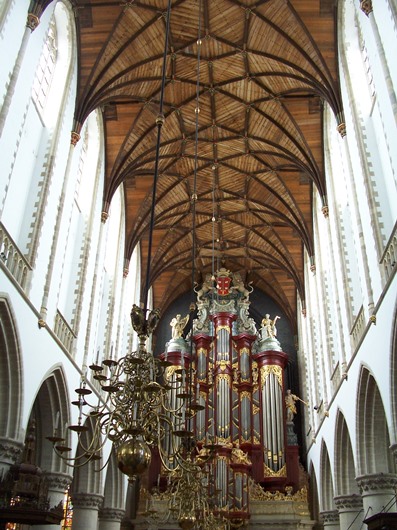 Церковь Святого Бавона в том же Гаарлеме (Харлеме), довольно величественное сооружение. Такое впечатление, что потолок отделан вагонкой, как в своё время новая комната на нашей даче в Томилино.