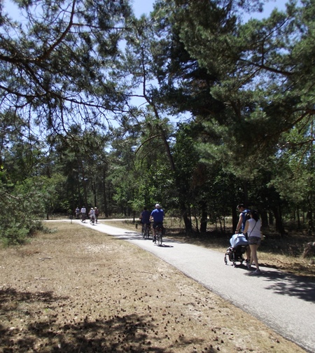 Такси едет минут двадцать, далековато. Даже велосипедной дорожки нет. Зато в парке феерия. Несколько огромных открытых и бесплатных стоянок велосипедов. От северозападного входа садишься на велосипед, доезжаешь до музея (минут двадцать) и оставляешь его на тамошней стоянке и т.д. Поездка на целый день, много семей с детьми (на каждом велосипеде сзади детское сиденье). Лес замечательный, сосново-дубовый. Песок. Нечто очень южное и удивительное для Голландии.
