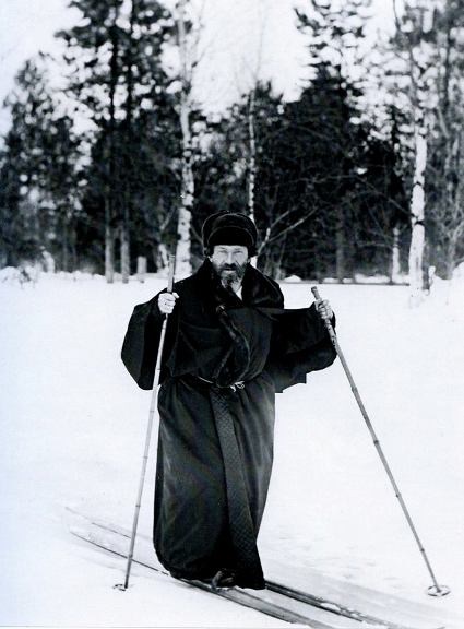 Репин на лыжах в Финляндии. Не учили его в школе, что палки должны до подмышек доставать.