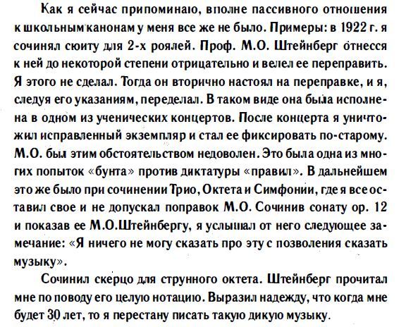 Впрочем, и консерваторский преподаватель Мити (Шостакович поступил в консерваторию в 13 лет) Максимилиан Осеевич Штейнберг (Макс из книжки "Дорога уходит в даль") с некоторым ужасом наблюдал за композиторскими упражнениями своего ученика. Вот несколько цитат из воспоминаний Шостаковича (выделено жирным фонтом) и из дневников М.О.Ш.