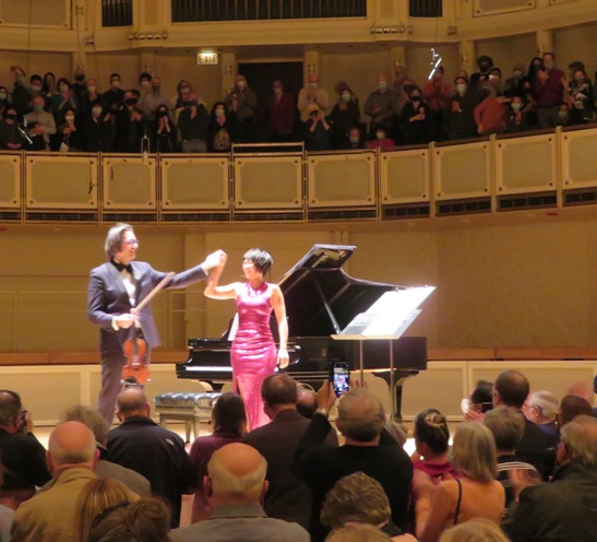 Юджа Ванг совершенно гениальная пианистка. Третья часть сонаты Баха (с Кавакосом) это было волшебно, перехватывало дыхание. Я слушал их в Чикаго, но вот рецензия на тот же концерт в Корнеги Холле. Платье, правда, было другое.
