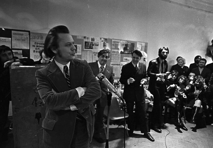 От Театра «Современник» юбиляров поздравляет Олег Табаков. 23.04.1974 года. Фото Анатолия Гаранина.