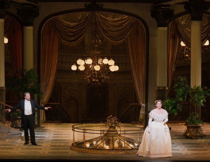 Посмотрели оперу Рихарда Штрауса "Арабелла". Штраус работал над ней в начале 30х, премьера в 33м. Действие происходит в 1860 году в Вене, глава семейства много и неудачно играет в карты, дочь семейства вдумчиво выбирает жениха и знакомится на балу в её честь с богатым незнакомцем из деревни. Две пары счастливо женятся. На дворе Германия, тридцатые годы, и вот такой эскапизм от новатора, автора "Электры" и "Саломеи".