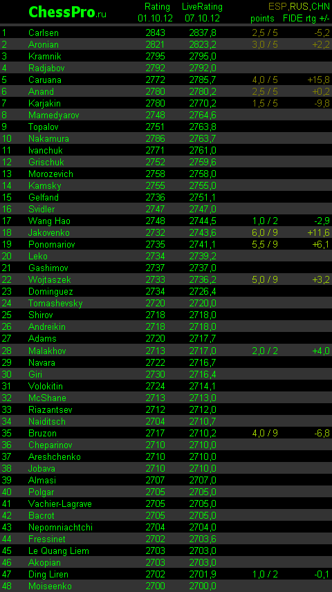 LiveRating Club 2700 - 14.10.2012