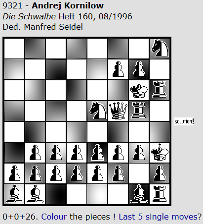 Попробовав распутать ретровечный шах в левом нижнем углу доски, придем к выводу, что подходит только один вариант: D - конь, N - ладья. Причем цвет их черный (3 диаграмма у Лачезара).