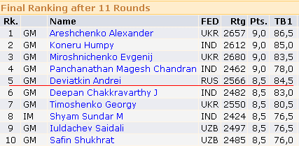 Андрей Девяткин с текущий рейтинг 2566 + 13,0 / Дагомыс / + 10,3 / Мумбай / = 2589,3 !