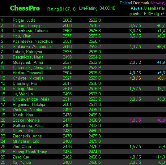 Women's Grand Prix - Ulaanbaatar(Rounds 1-4 of 11)[ Koneru,Hou Yifan, T. Kosintseva, Stefanova, Sebag, Chiburdanidze, Xu Yuhua, Zhu Chen, Zhao Xue ]