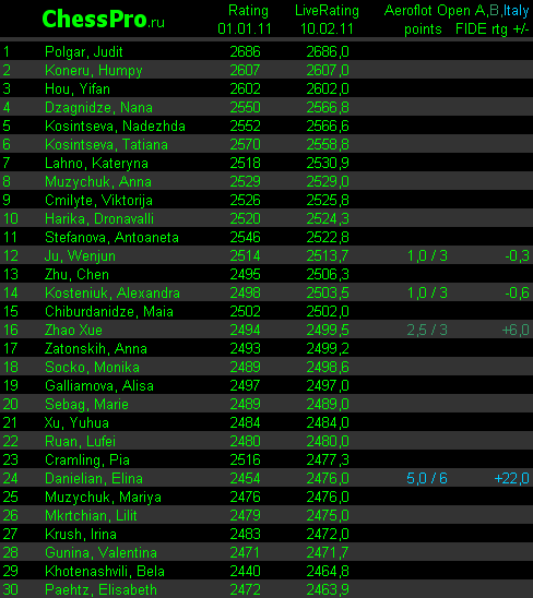 Aeroflot Open A(Rounds 1-6 of 9)[ Ju Wenjun, Kosteniuk, Pogonina ]