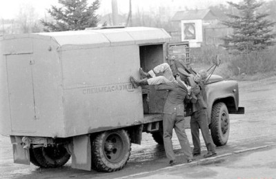 12. Для удаления с улиц и других общественных мест лиц, находящихся и пьяном виде, назначаются экипажи медицинского вытрезвителя в составе милиционера-водителя и двух милиционеров на специально оборудованных автомобилях с надписью "Спецмедслужба".