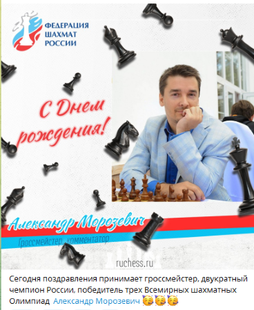 Наткнулся в интернете на Морозевича в качестве шахматного интервьюера. Очень интересные и содержательные беседы с Непомнящим, Есипенко, и Дубовым. Последняя совсем свежая. Во всех трех, Моро задает интересные/провокационные вопросы. Словом, очень понравился контент.