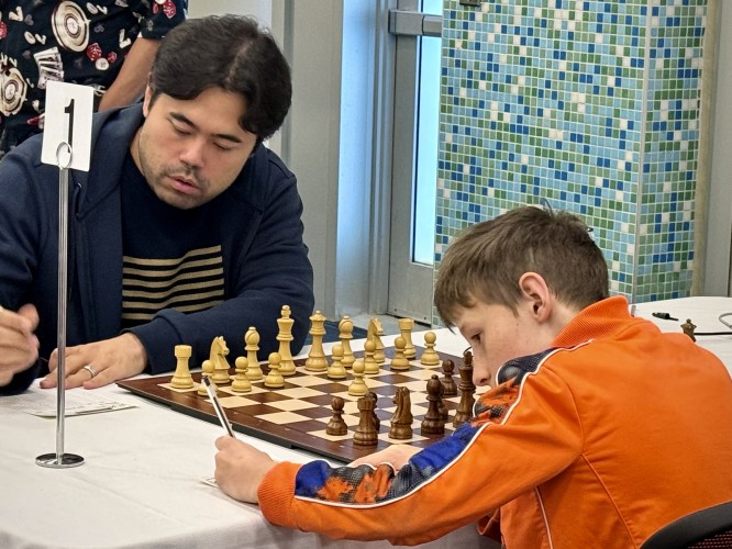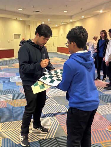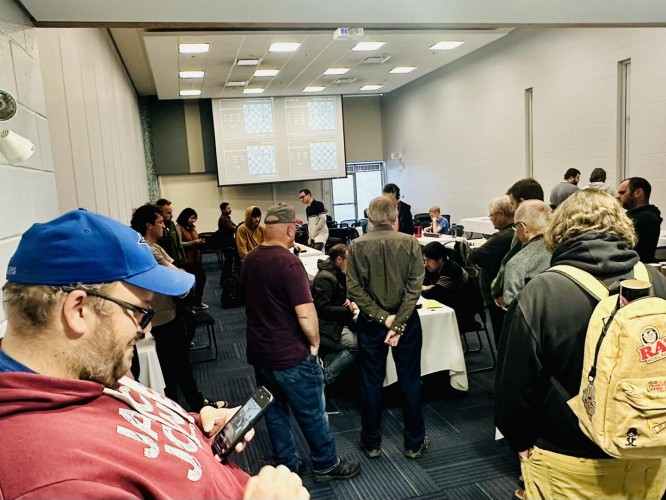 GM Hikaru Nakamura faced IM Tangi Migot and secured another win. 🏆 After the game, Hikaru headed to the analysis room—packed wall-to-wall with fans eager for photos and autographs. A truly electric moment for chess in PEI! ♟️