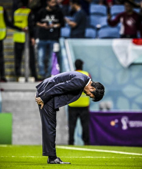 lasker emanuel: Японский тренер Хадзиме Мориясу кланяется фанатам, чтобы поблагодарить их за поддержку.👏