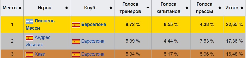 Вообще, там в статье выше по теме говорилось, что в 2010 году Месси украл ЗМ одновременно у Снейдера, Иньесты и Хави - это должно немного настораживать.