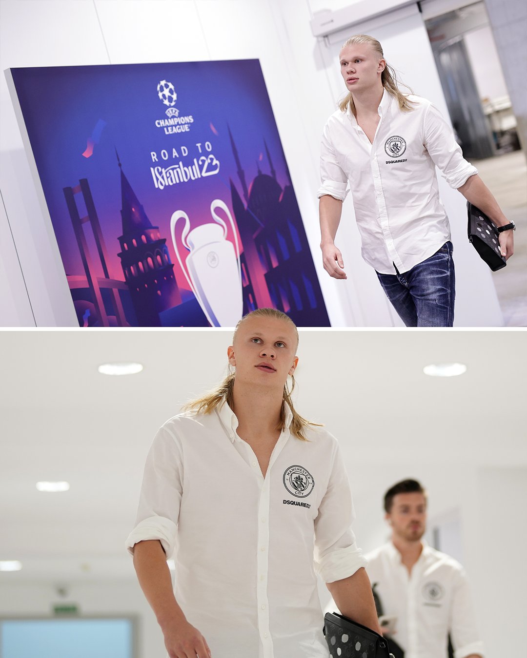 | Erling Haaland arrives for his first ever match in the Santiago Bernabéu 🤩 |