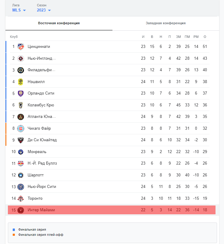 Это команда Интер Майами в МЛС до прихода Месси и компании - последнее место конференции, серия поражений и т.д.
