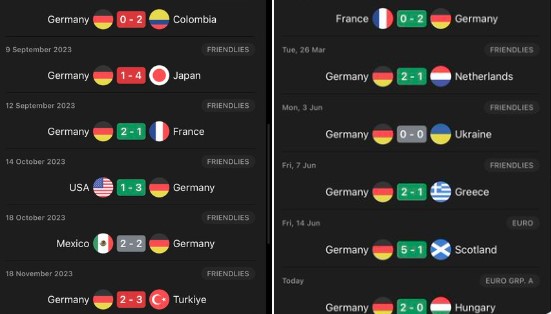 | точная и правильно организованная игра немцев, да еще при 1:0 вынуждает венгров играть в затратный футбол, они закономерно подустали уже. а бежать надо. в общем, идет дело к 0:3. если захотят немцы, то и хуже. тем более вышел дацик, это сигнал к сливу. |