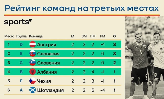 Регламент Евро-2024: что считают при равенстве очков, как формируется рейтинг третьих мест?