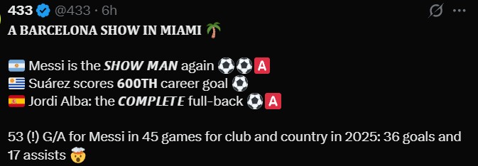 Ліонель Мессі завдяки дублю встановив новий рекорд МЛС. В активі аргентинця тепер 9 матчів в сезоні із 2+ забитими м'ячами, що не вдавалося нікому раніше.