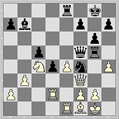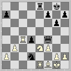 30...Ng5 31.Qxg4 (ферзя долой с доски!) 31...Bxg4 32.Nxg4 Qd6 33.exd4. «Упорнее было, как указал Л. Пахман, 33.f3. Теперь белые проигрывают форсированно». 33...Qf4 34.Ne3 cxd4 35.Rc2 Re8. Может быть, лучше было 35...Rxc2 36.Nxc2 Qd2; или 35...Rc3 36.Rxc3 dxc3. Но наверняка тут уже давным-давно шло цейтнотное «шлёпанье».