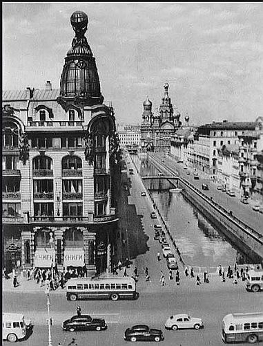На первом фото храм Спаса на Крови стоит еще без лесов. Не помню когда его обставили лесами, но под ними храм простоял десятки лет. С юных лет этому удивлялся. Даже Розенбаум в одной из песен об этом пел.