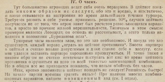 Владимир Царенко: Сторонником отмены шахматных часов выступил Тарраш. Выиграв однажды без часов матч против Вальбродта с результатом +7-0=1, он по этому поводу заявил, что это был единственный случай в его практике, когда условия позволили ему развернуть силы во всей полноте.