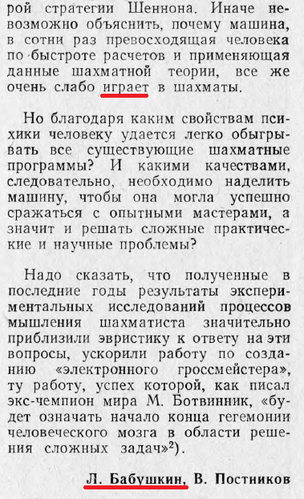 Загорянский. Машина и шахматы. Шахматы в СССР 3'1959, стр.68-69. |