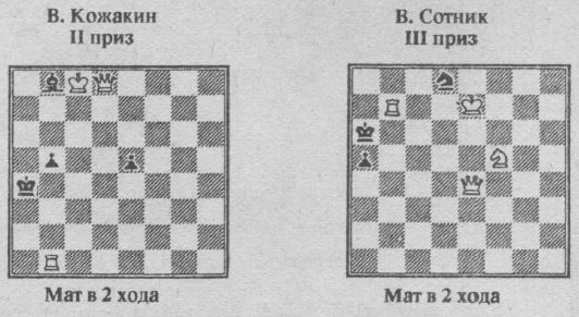 | Vova17: Задача Сотника удивительна своим вторым призом, с Почитателем полностью согласен. А первая мне понравилась, много игры. |