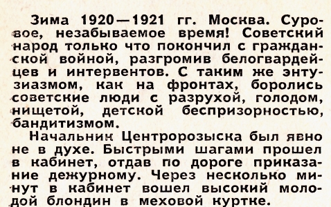 | mickey:Грубая историческая ошибка всего рассказа в другом: Центророзыск не занимался борьбой с уголовщиной и бандитизмом, он занимался поиском пропавших и потерявших друг друга во время Гражданской войны. |