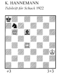 Кстати, я немного подвигал фигуры после Ле4 и мне не удалось в возникшей позиции поставить мат в 2 хода при ходе белых. Получается, что первый ход ставит черных в цугцванг. Пмм, неожиданно. |