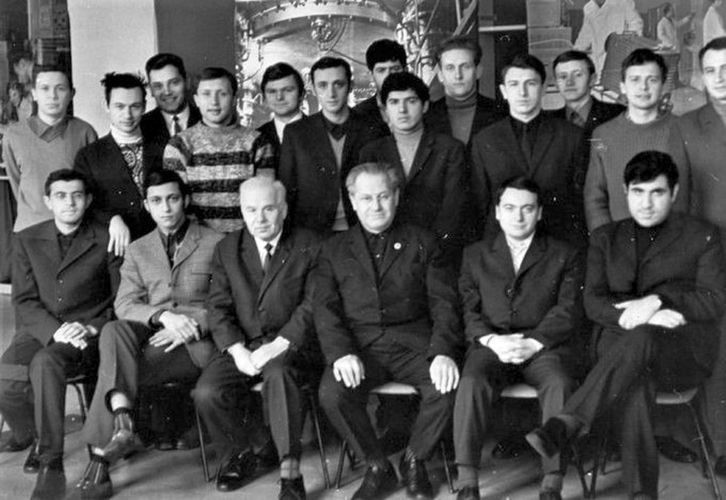 Стоят: Файбисович, Капенгут, Чепижный (спецкор "64"), Тукмаков, Купрейчик, Бокучава, Дворецкий, Ваганян, Бутнорюс, Свешников, Романишин, Разуваев и Гулько.